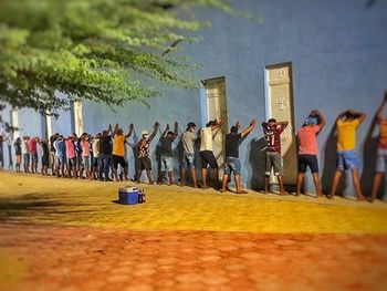 Como é possível ver na foto, a festa era realizada em uma praça e contava com uma grande aglomeração. Todas as pessoas e seus veículos foram revistados. Logo depois, a Polícia dispersou todos do local.