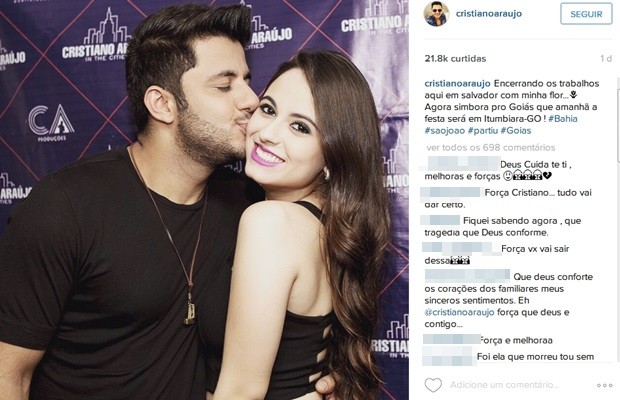 Na última terça-feira (23), o cantor publicou em sua página no Instagram uma mensagem dizendo que estava partindo da Bahia, ao lado na namorada, com destino a Itumbiara. Após o acidente, muitos fãs comentaram na imagem sobre o ocorrido e mandam mensagens de solidariedade ao cantor.